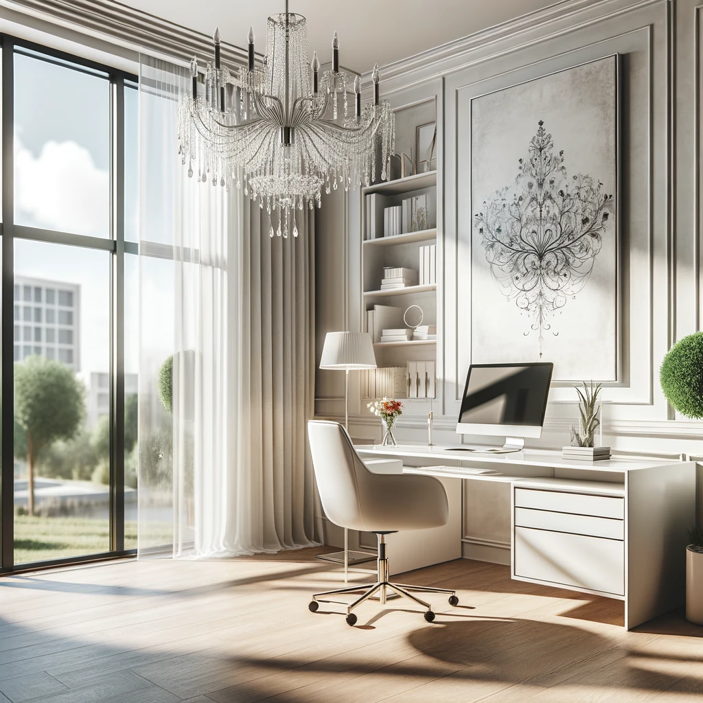 In the domain of home offices, where functionality melds with style, a notable yet elegant upgrade stands out: the chandelier. This sophisticated addition can rejuvenate your home office environment, providing more than just light; it enhances mood and ambiance. There’s a variety of hanging light fixtures suitable for this transformation, including traditional chandeliers, pendants, and unique flush mounts.
